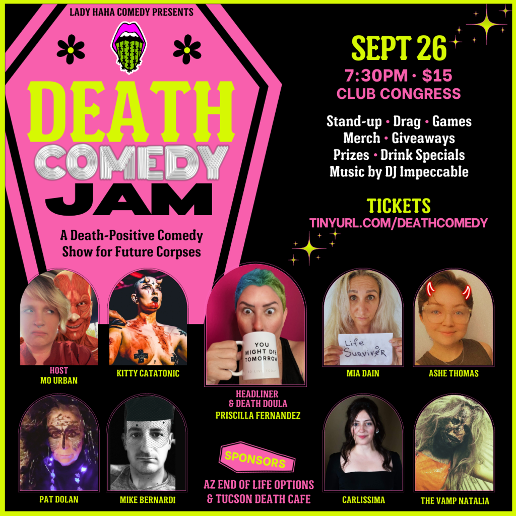 Lady HaHa Comedy presents “DEATH COMEDY JAM” at Club Congress Tuesday, Sept 26th at 7:30.